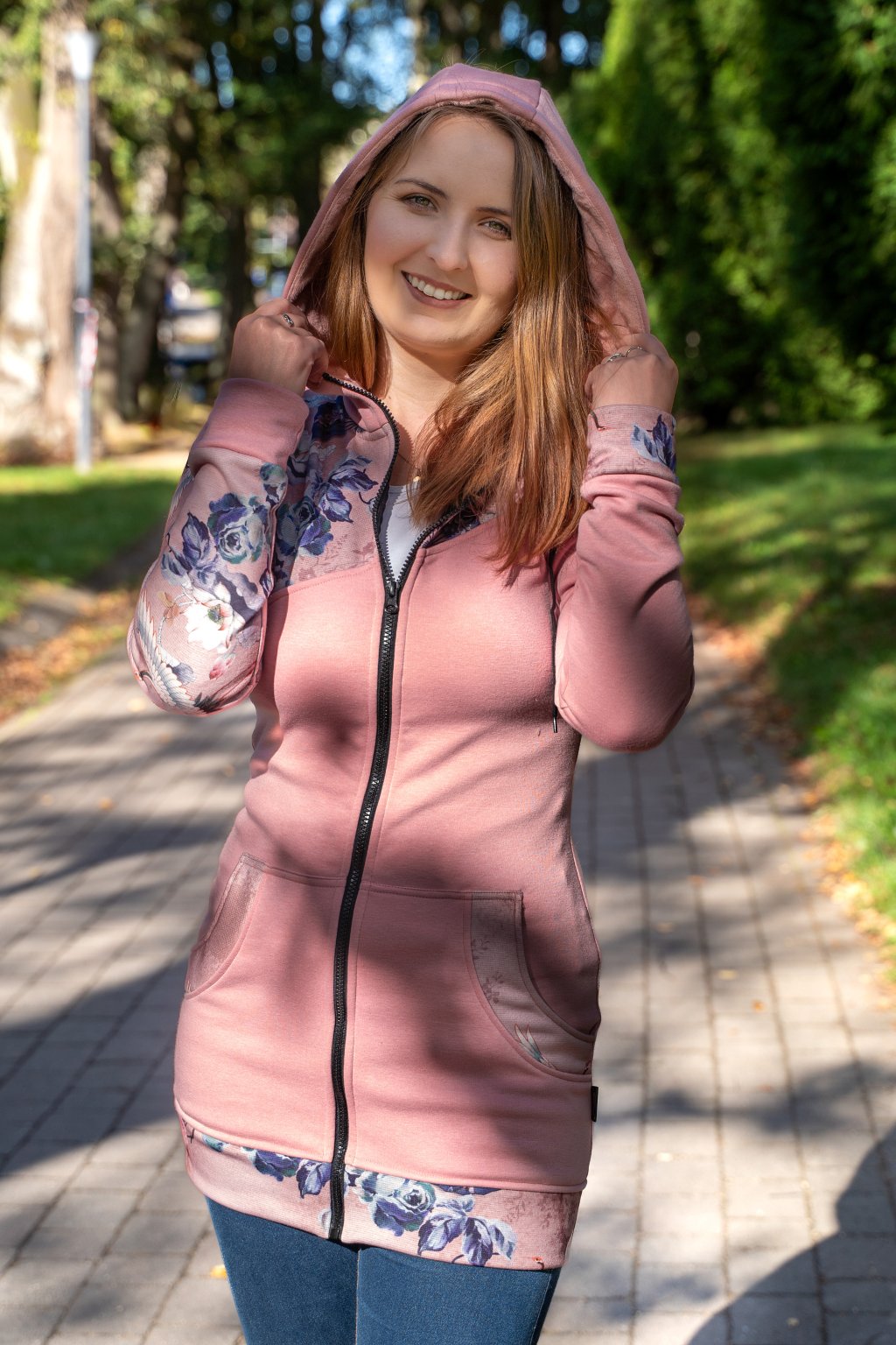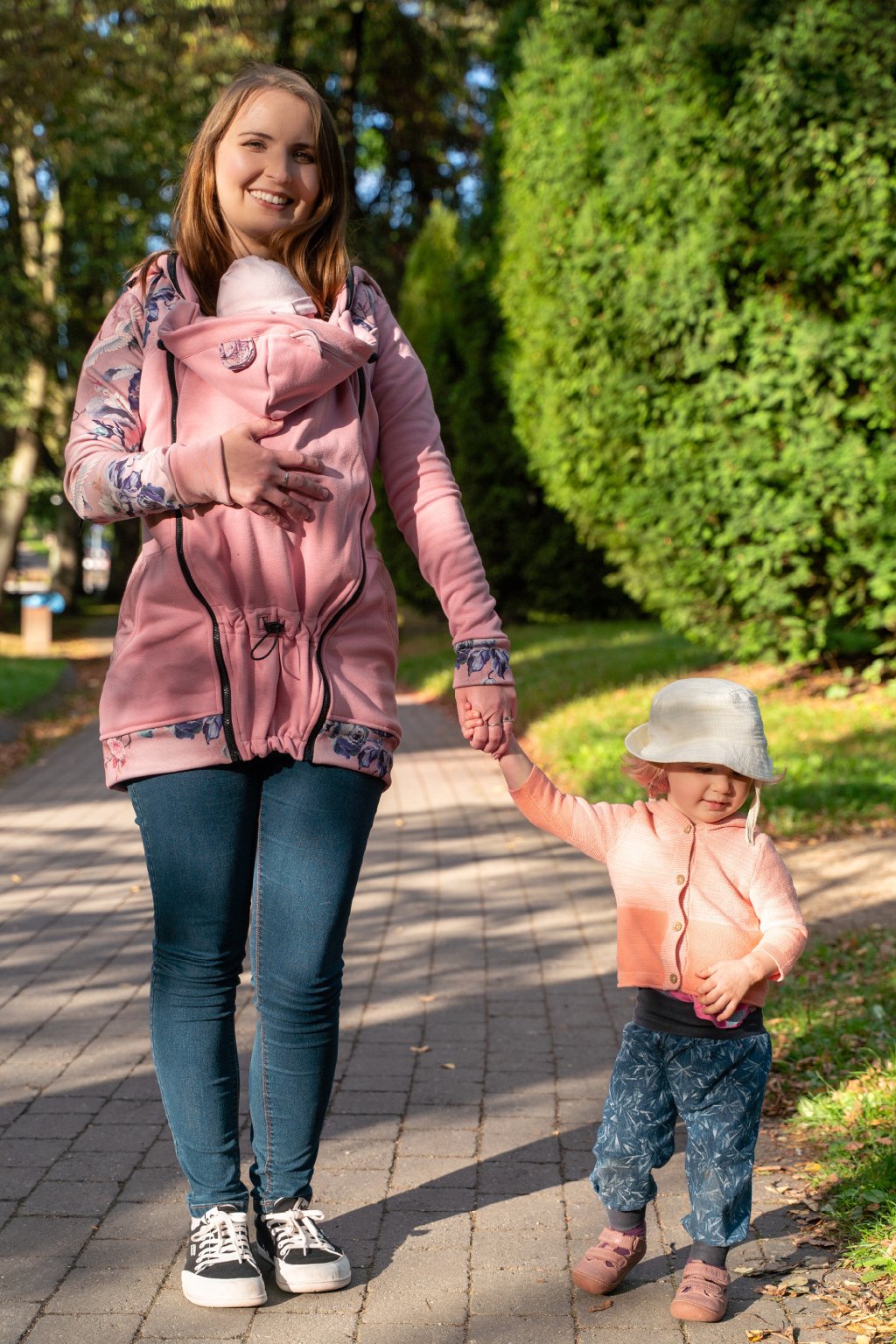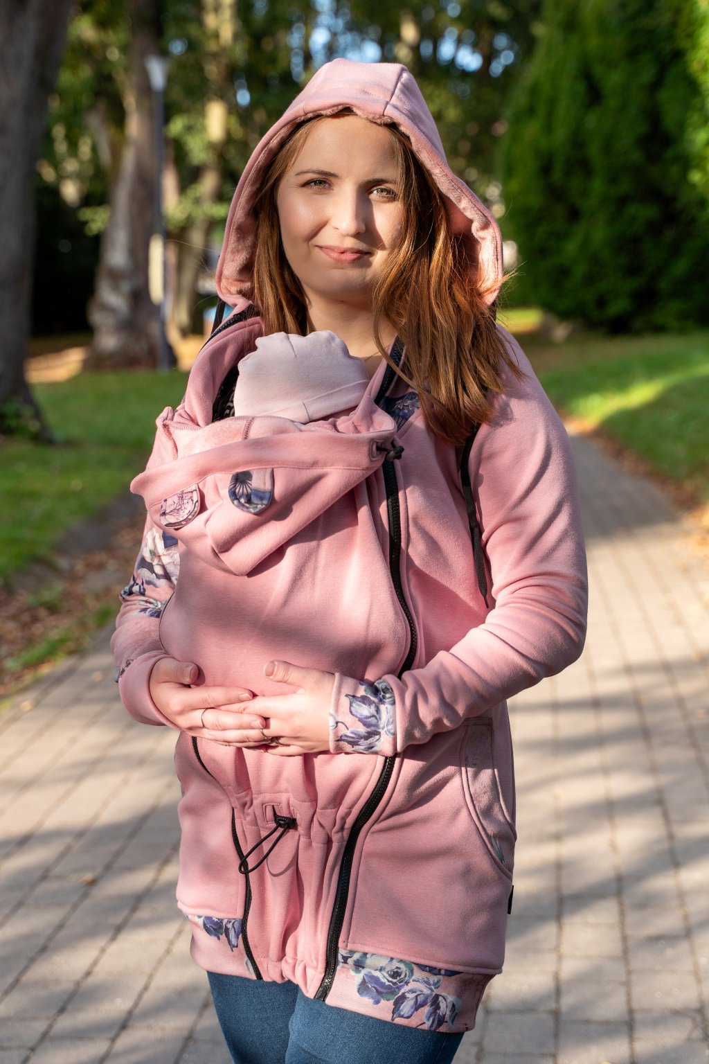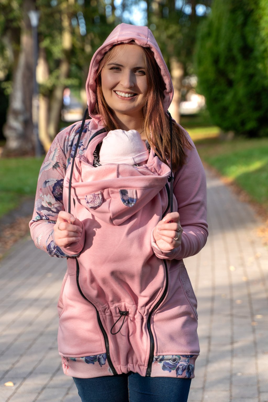 Nosicí mikina Jsem máma s kapucí – pudrově růžová s květy