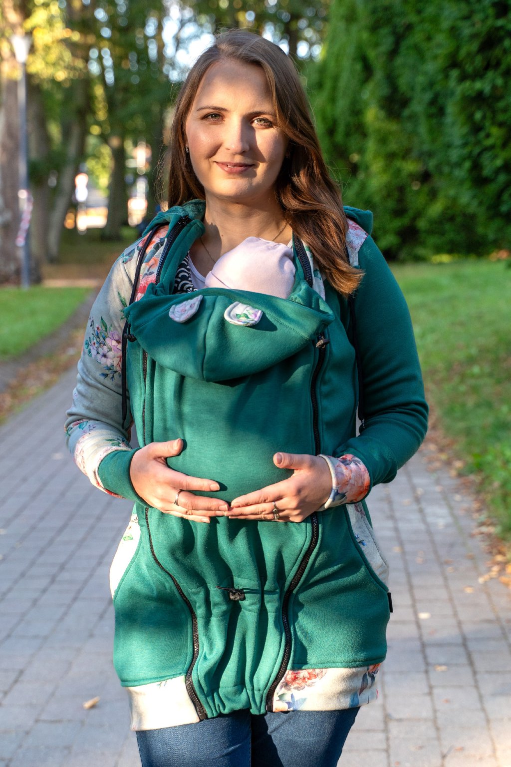 Nosicí mikina Jsem máma s kapucí – zelená s květy