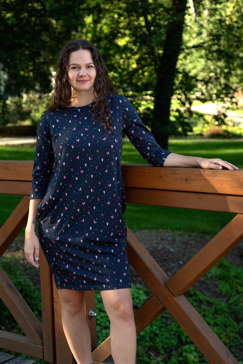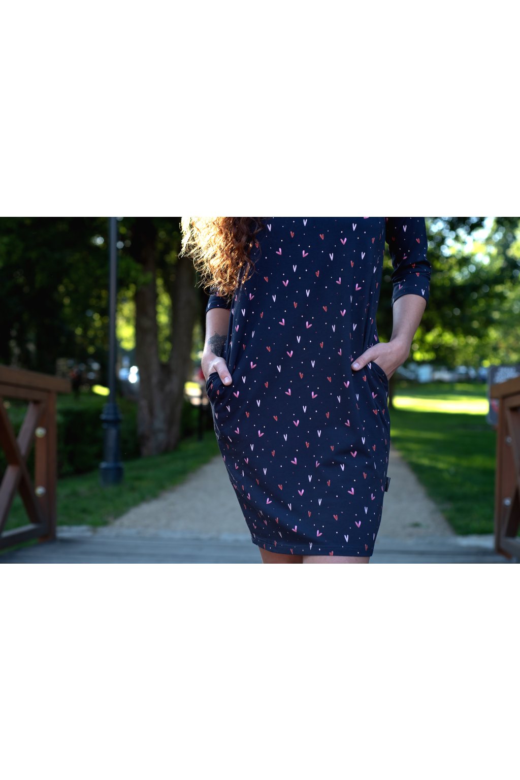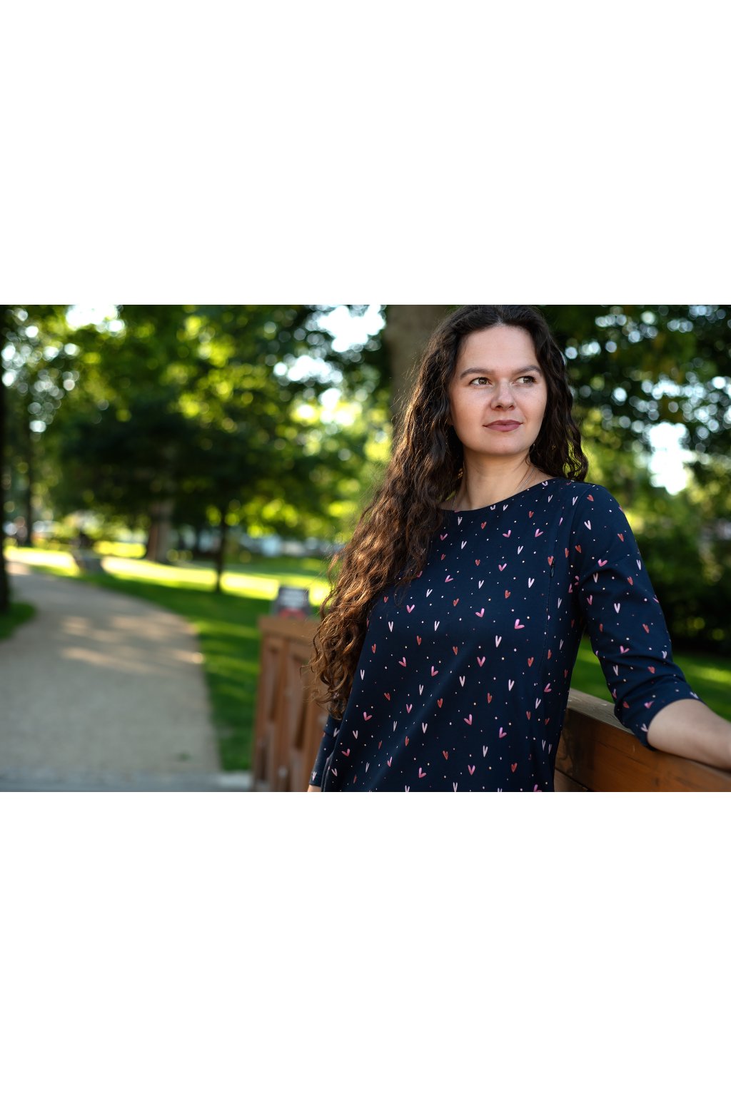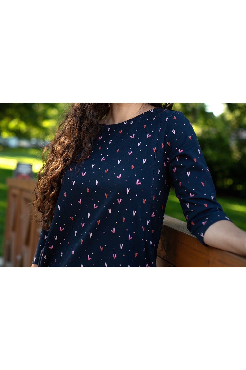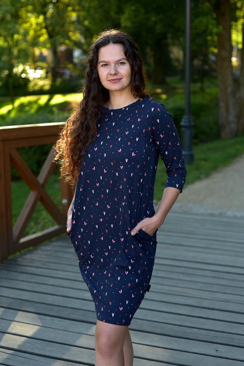 Oversize těhotenské a kojicí šaty Jsem máma, srdíčka na modré, LIMITOVANÁ EDICE