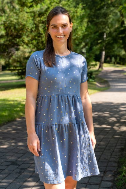 BIO mušelínové kojicí šaty se skrytým zipem – Srdíčkové nebe