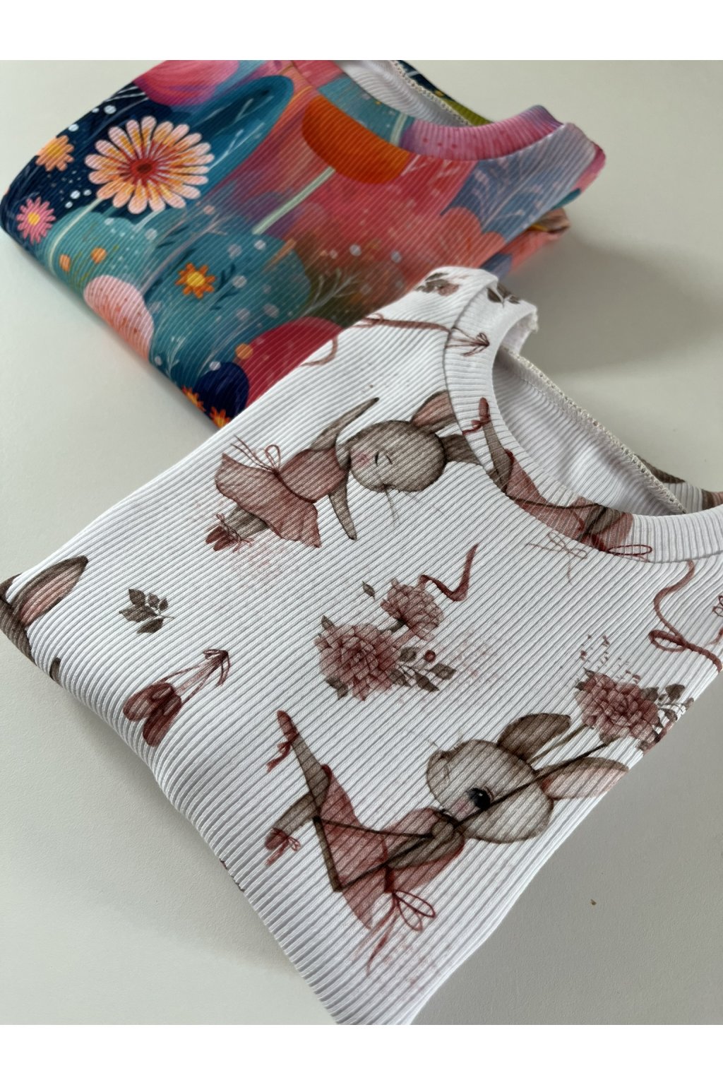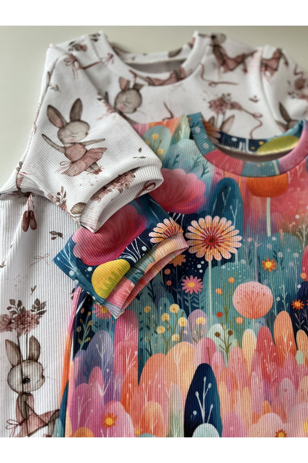 Díky Natálce jsem se dostala k šití výbavy pro miminka a nakonec jsem se dopracovala až k šití oblečení pro děti. Naty konfekce moc neseděla, oblečení bylo spíše široké než dlouhé a nebavilo mě stále kupovat nové a nové kousky, protože velikostně nesedělo, přitom ho nosila krátkou dobu