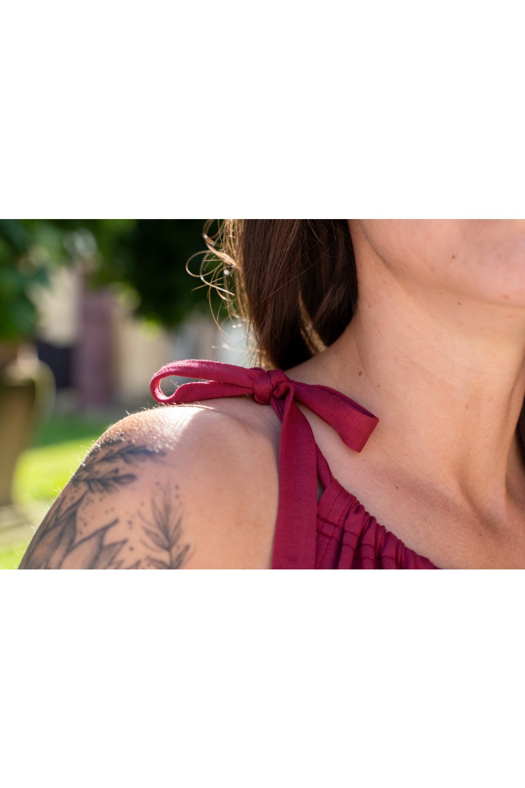- Zavazovací ramínka na mašličku nejsou jen krásným detailem – díky nim si sama nastavíte ideální délku šatů i hloubku výstřihu podle aktuální potřeby.