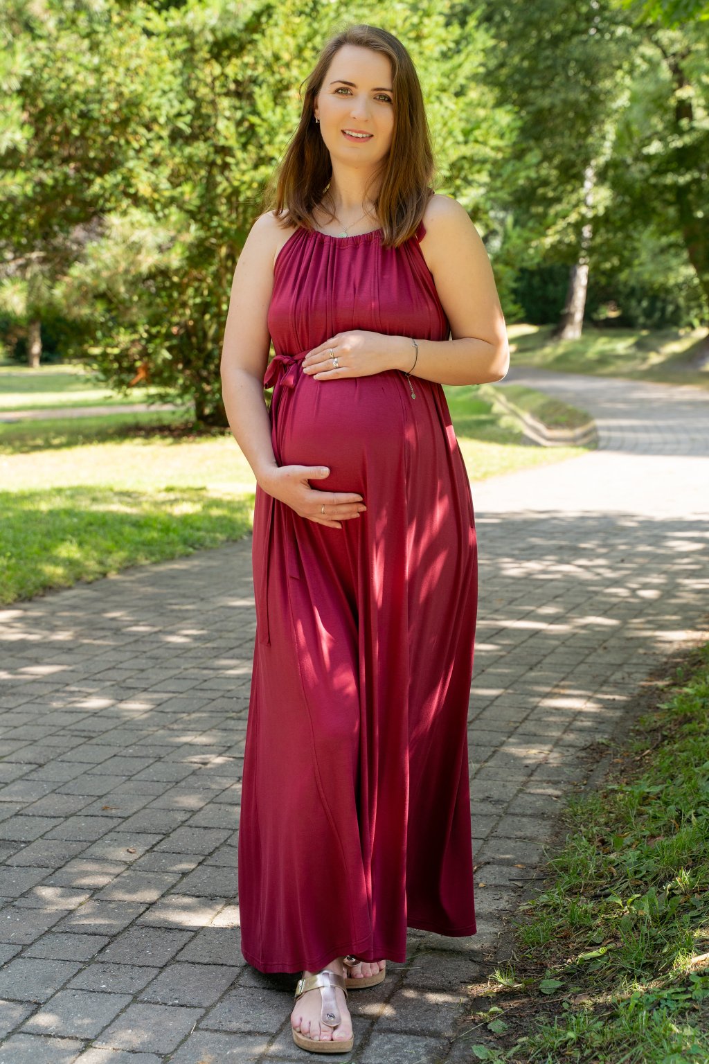 Univerzální těhotenské a kojicí MAXI šaty Jsem máma Bordó