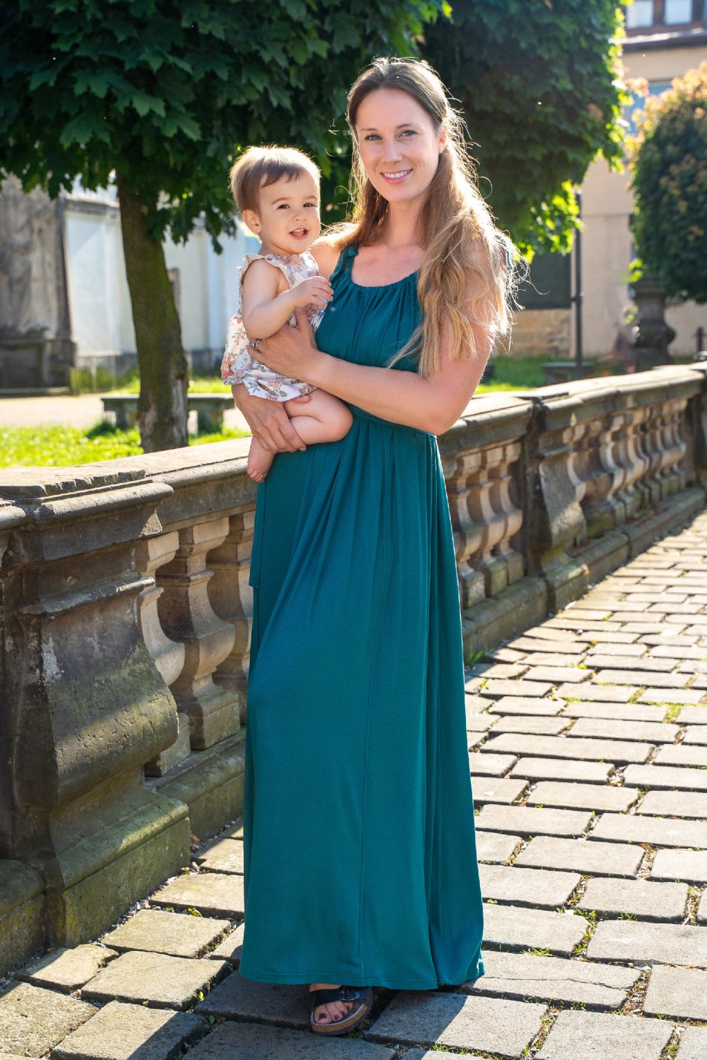 Univerzální těhotenské a kojicí MAXI šaty Jsem máma Petrolejové