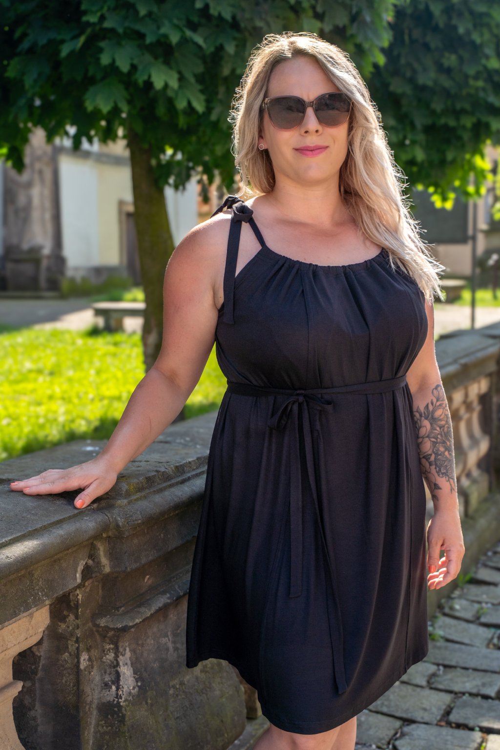 - Volný áčkový střih působí vzdušně, lichotivě a snadno si ho dotvarujete přiloženým páskem. ➡️ Ten lze uvázat v pase či pod prsy, což využijete zejména v těhotenství či v týdnech po porodu.