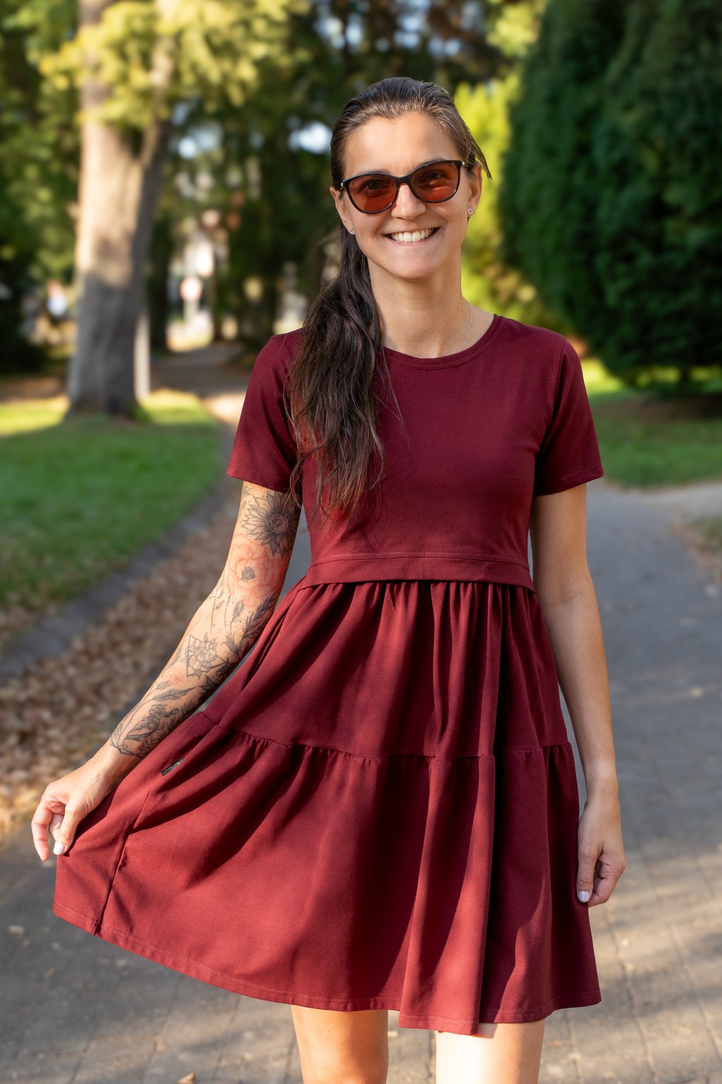 Volnočasové kojicí šaty Jsem máma s kapsami Bordó