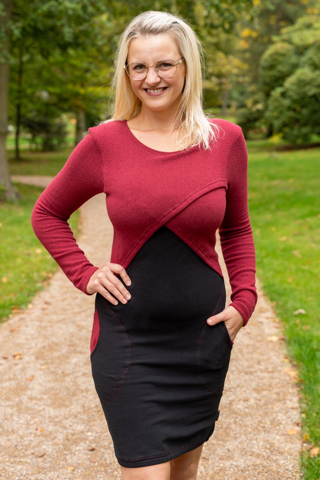 Zimní kojicí šaty Jsem máma, vínově červené, II. jakost